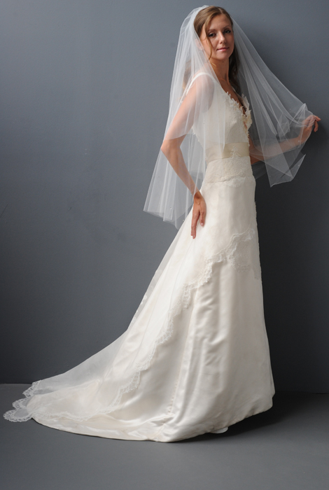 2 tier, Fingertip, plain edge veil with Swarovski stones